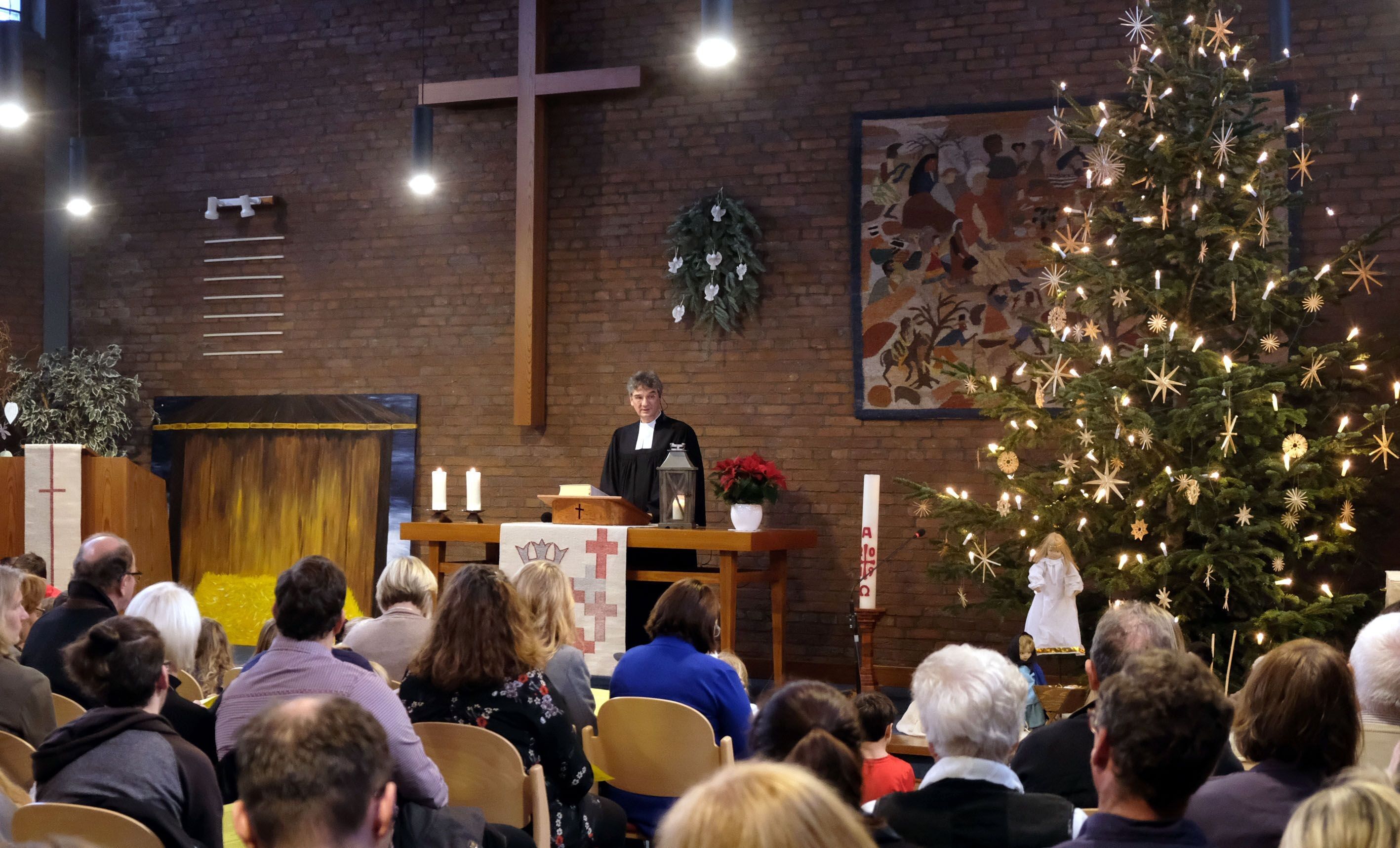 Wir feiern Familiengottesdienst mit Krippenspiel in der Friedenskirche am Heiligen Abend, besonders für Kinder im Kindergartenalter.