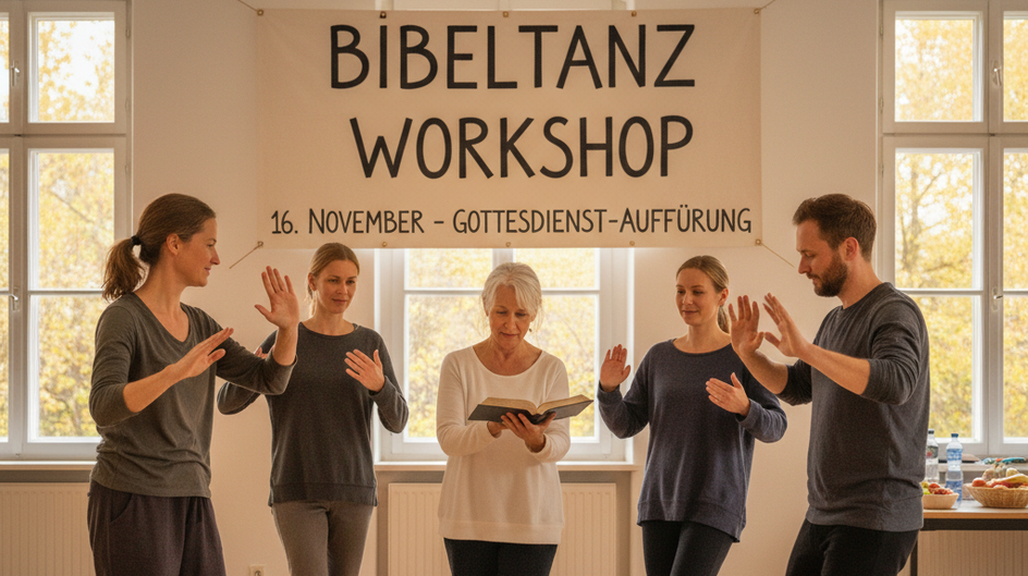 Ihr braucht keinerlei Vorerfahrung, sondern einfach nur ein bisschen Neugier, Spaß an Bewegung und Mut euch zu präsentieren, denn wir werden diesen Tanz dann im Gottesdienst am 16. November aufführen.